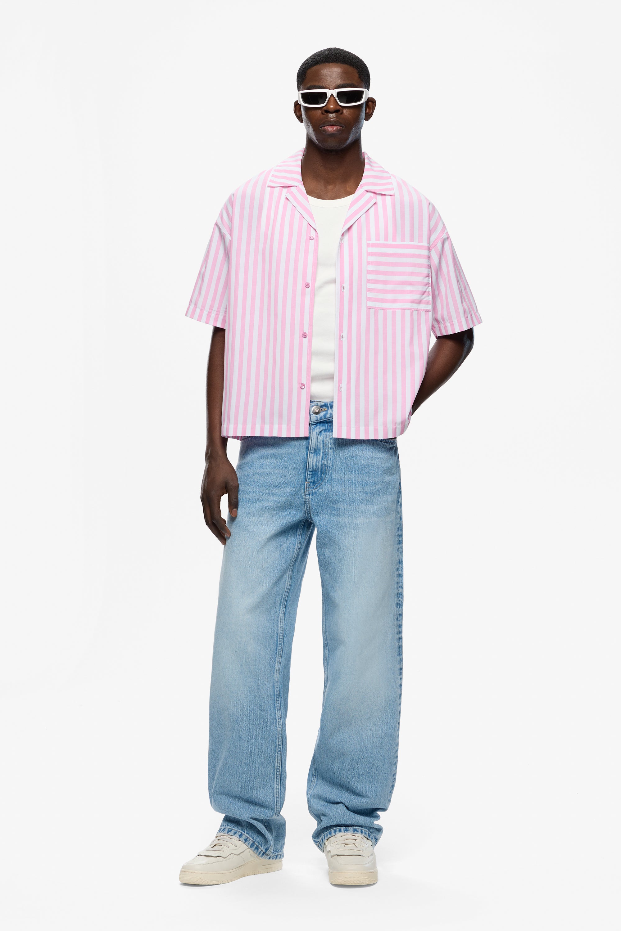 - Kurzarm Hemd Striped Cotton Candy/White